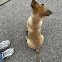 AT 0 ano(s), 5 mês(es) e 20 dia(s), Tuco (Micro de Los Guardianes), Pastor-belga Malinois masculino , pesado 25.7 kg.