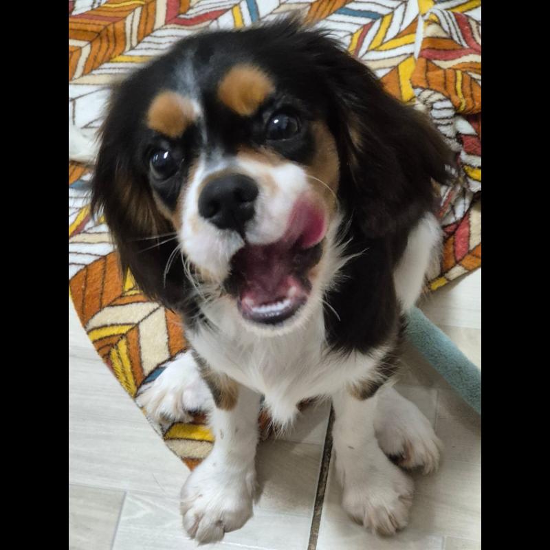 AT 0 ano(s), 11 mês(es) e 5 dia(s), Akira, Cavalier King Charles Spaniel fêmea , pesado 7.3 kg.